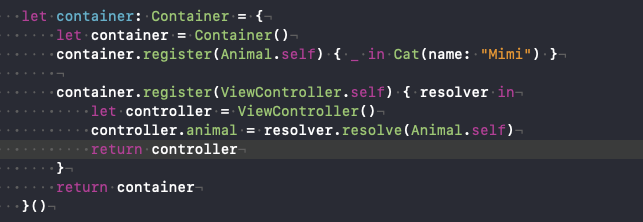 resolver를 통해 ViewController에서 사용하는 animal에 의존성을 주입해줍니다.