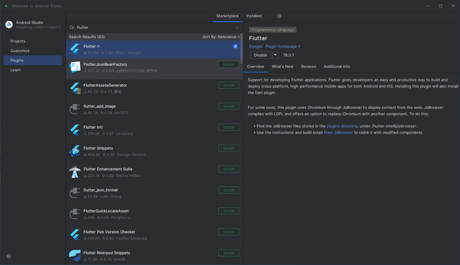 VsCode도 사용가능하지만 기본적으로 익숙한 Android Studio로 환경구축을 해보자.