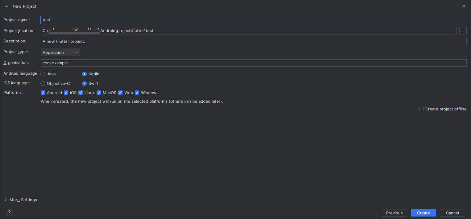 위에부터 프로젝트 이름, 프로젝트 경로, 한줄 설명, 타입, package, AOS/iOS 언어설정, 플랫폼 설정 이다.