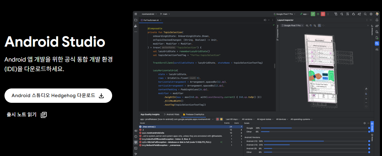Android 스튜디오 및 앱 도구 다운로드 - Android 개발자 | Android Studio | Android Developers